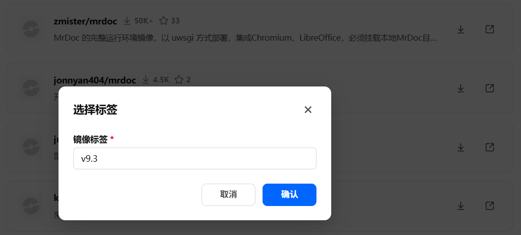 飞牛 FnOS 是一个基于 Linux 内核、深度定制开发的 NAS 操作系统。下面介绍在飞牛fnOS里面部署 MrDoc觅思文档。 > i 本教程使用 fnOS V1.1.19 版本进行演示 ## 1、获取 Docker镜像 在飞牛OS的「Docker」组件里面,切换到「镜像仓库」栏目,在输入框输入「mrdoc」点击搜索图标,在搜索结果里面,选择「zmister/mrdoc」这个镜像  然后选择最新的版本:  下载完成会显示在Docker 本地镜像的镜像管理中:  ## 2、获取代码 前往MrDoc的仓库,使用Git或下载「zip」格式的压缩包到本地:  zip压缩包下载后解析到本地。 然后将MrDoc的代码目录上传到飞牛OS的指定文件夹内:   上传完成:  ## 3、创建容器 在飞牛OS Docker 组件的本地镜像栏目,选择刚刚下载的「zmister/mrdoc」镜像,点击「运行」按钮:  在弹出的创建容器窗口中,切换到「文件夹路径」,点击添加「添加」按钮:  选择刚刚上传到极空间的MrDoc代码目录:  装载路径填入`/app/MrDoc`:  然后在切换到「端口」,根据自己的需求,填入「本地端口」,这边建议使用`10086`端口:  最后点击「应用」,MrDoc容器就创建好了。在「容器」栏目下,可以看到MrDoc容器的运行情况:  我们现在在浏览器中访问`极空间IP地址:10086`,就可以看到MrDoc觅思文档的界面了:  这就说明部署成功了! ## 4、创建管理员 在 Docker「容器」栏目下,点击MrDoc容器的「SSH」,:  命令栏选择「/bin/sh」,点击连接:  进入到容器的终端命令行界面,输入命令: ``` python manage.py createsuperuser ``` 然后,按提示依次输入用户名、邮箱和密码即可:  ## 5、数据备份 MrDoc觅思文档默认使用文件型数据库`SQLite`,你只需要将极空间里面MrDoc代码目录里面的`config`目录和`media`目录备份,即可实现数据备份。  ## 6、更新 如果MrDoc发布了新的版本,你需要先进行数据备份,然后获取最新的代码进行覆盖,接着使用备份的`config`目录和`media`目录覆盖到代码目录里面即可。