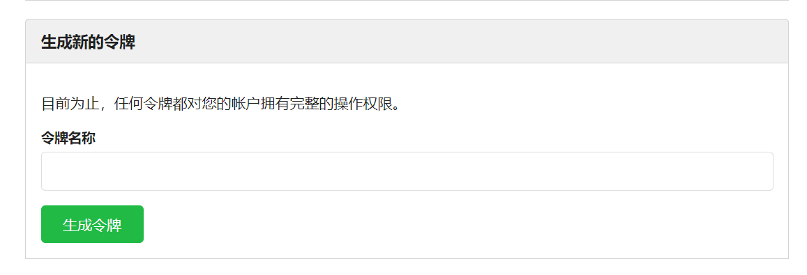 在获得 MrDoc 专业版私有仓库授权账号之后,需要首先前往「用户设置」页面:  点击「授权应用」:  点击「生成新的令牌」:  随便输入一个名称,然后点击「生成令牌」按钮: